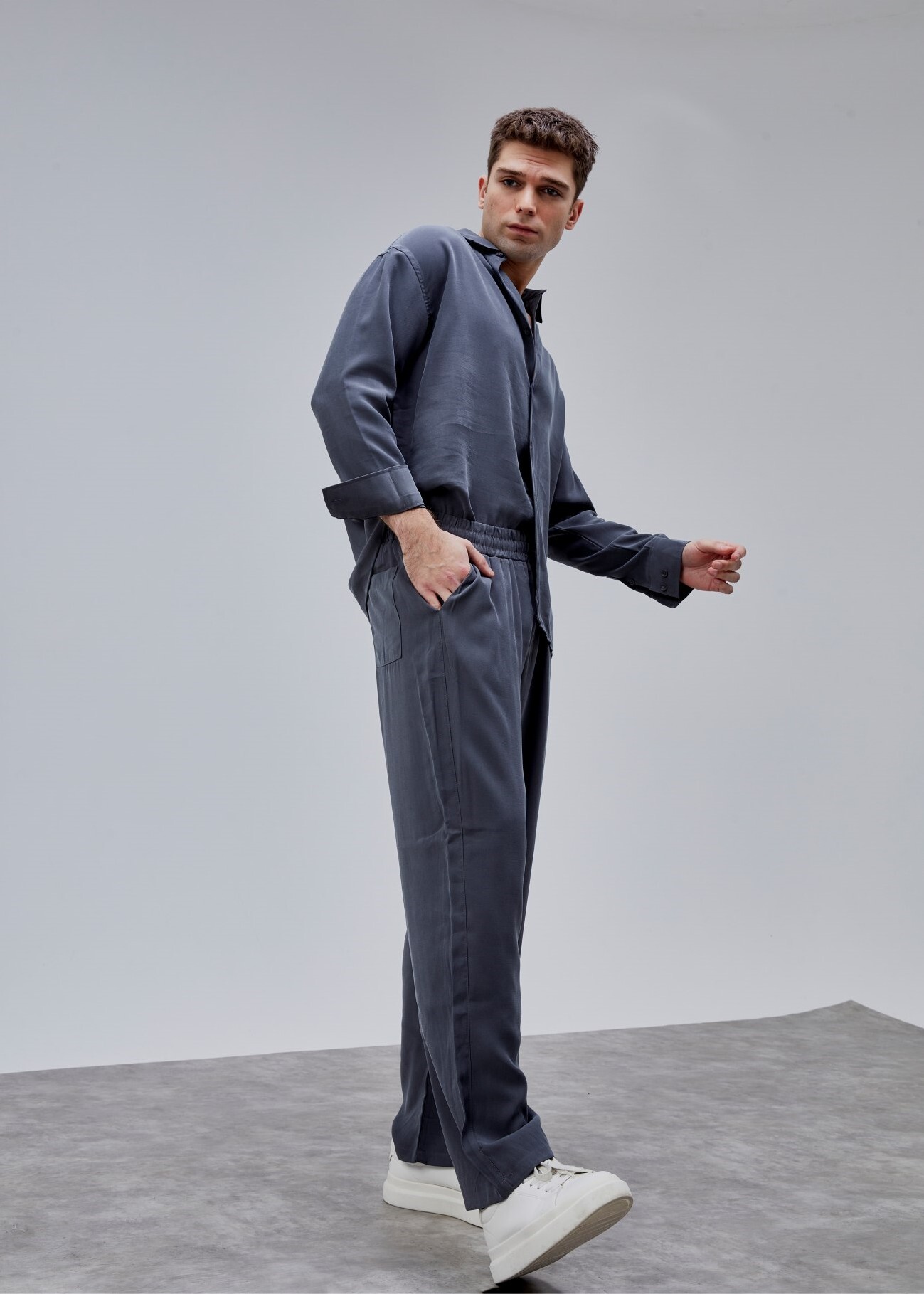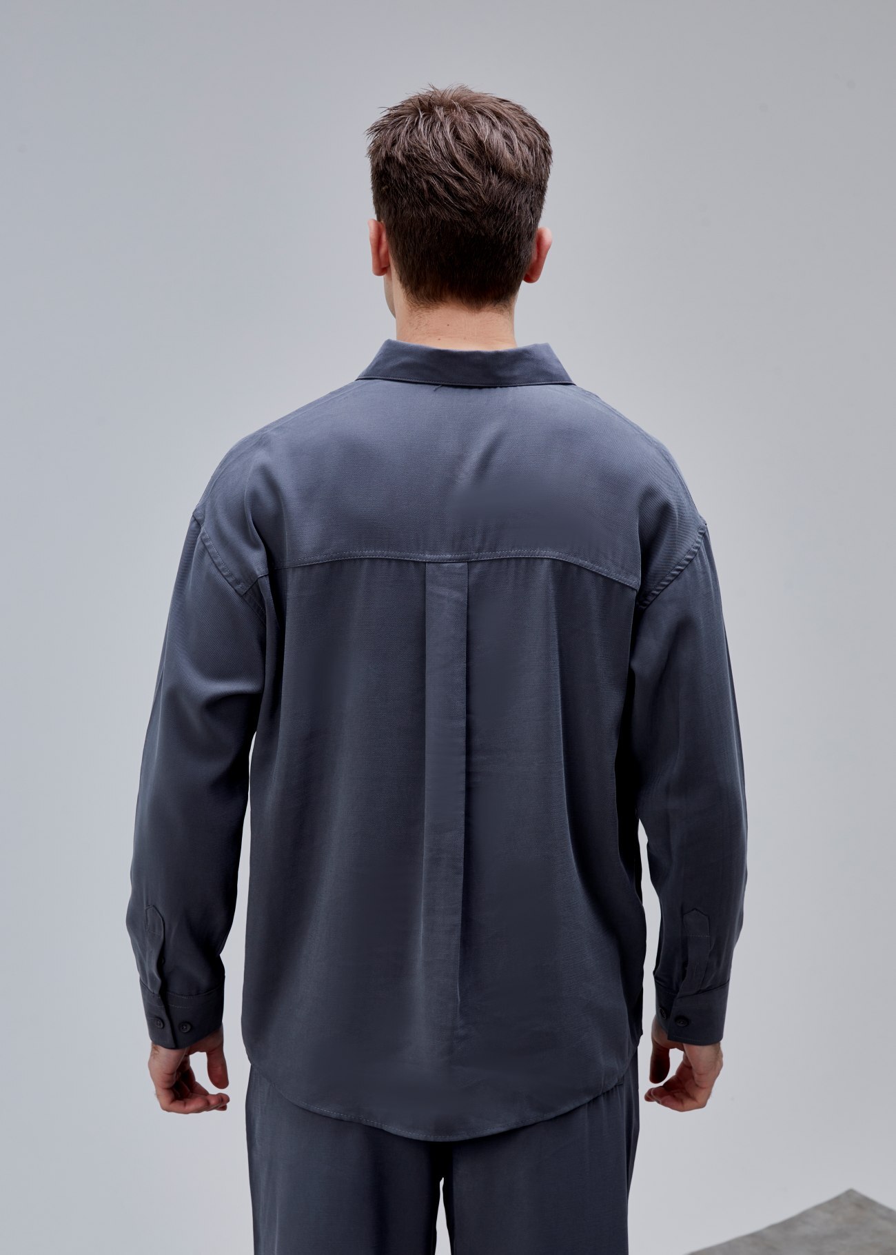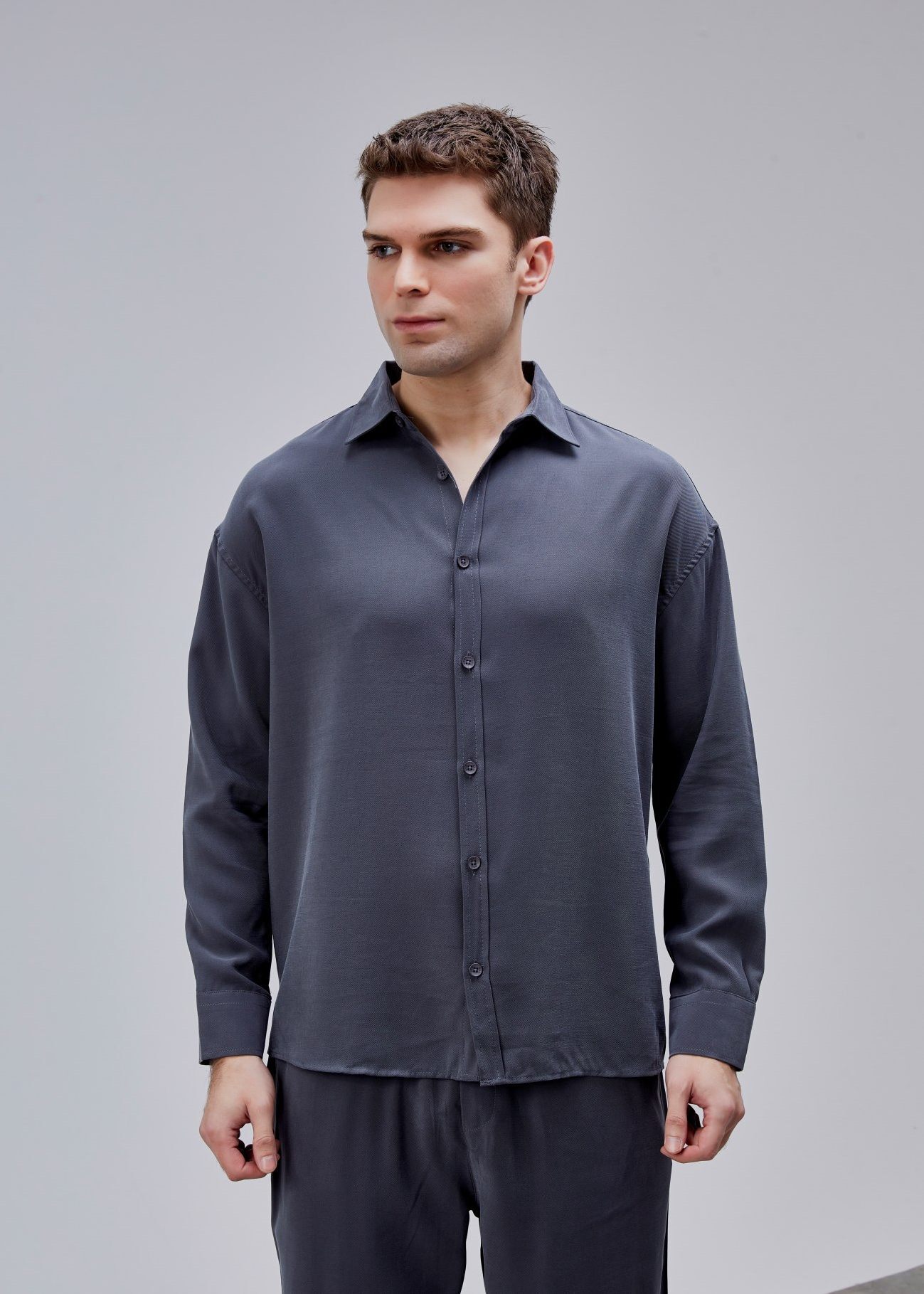 Antrasi̇t Renk Oversize Tensel Gömlek