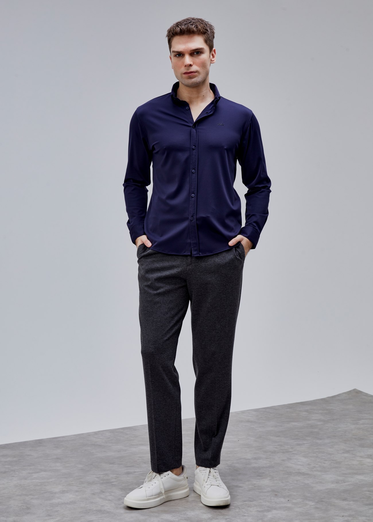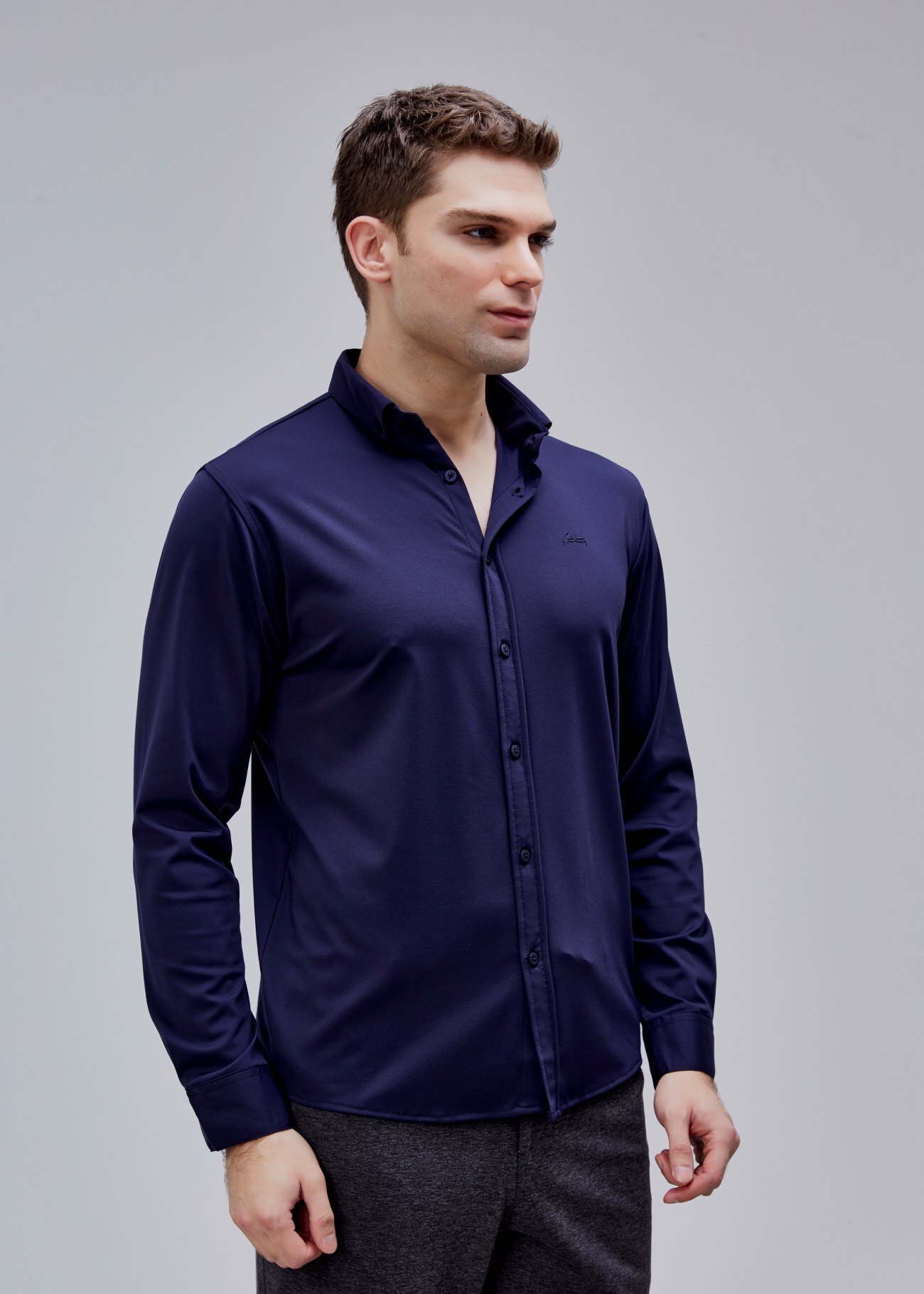 Lacivert Renk Uzun Kol Polyester Gömlek