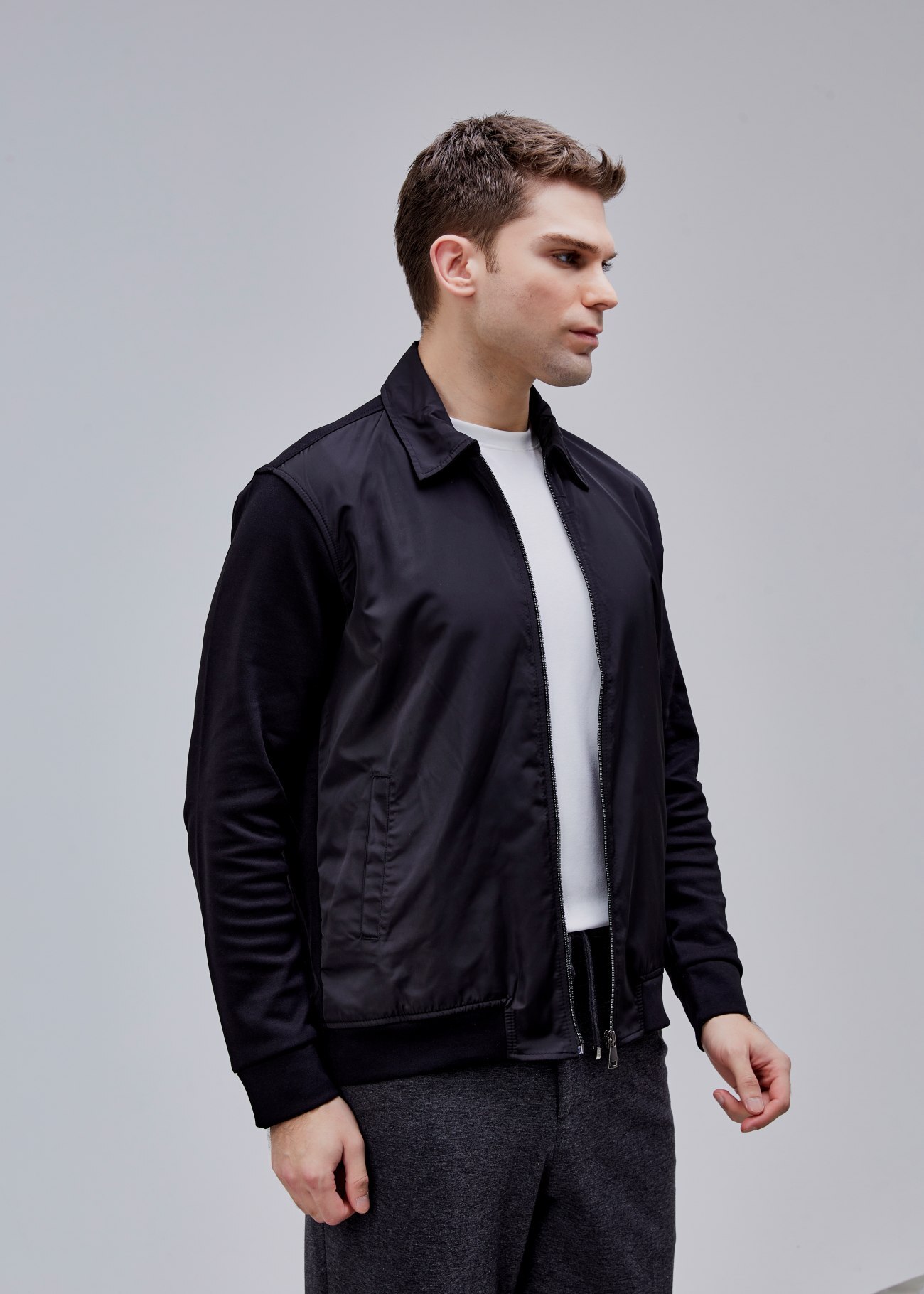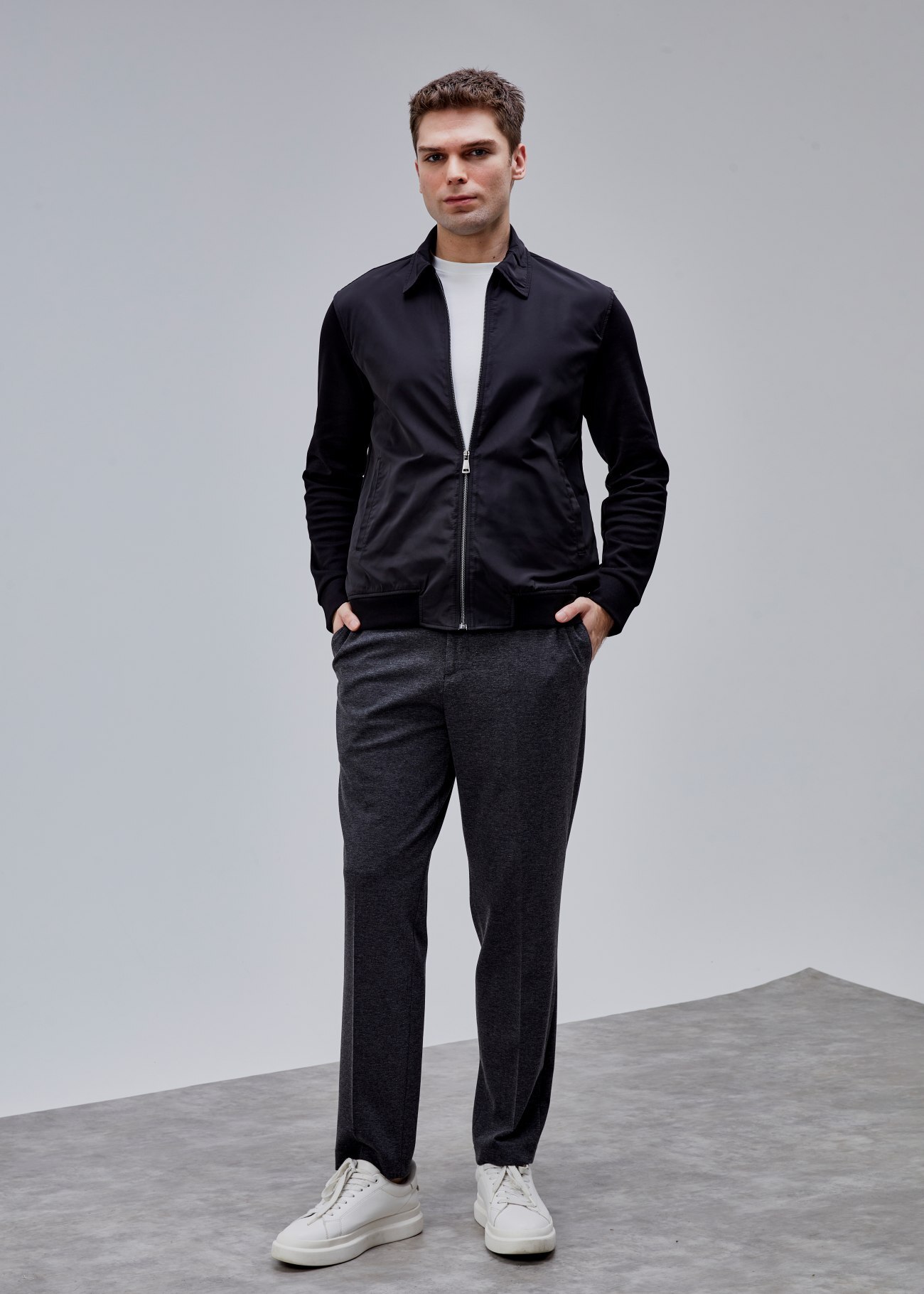 Şehrin temposuna uyum sağlamak için tasarlanan bu esnek polyester ceket; fermuarlı yapısı ve örme kol detaylarıyla hem spor hem modern bir görünüm sunarken, hafif ve dayanıklı formu sayesinde hareket özgürlüğü sağlar; gün boyunca rahat, her an stil sahibi hissettirir.